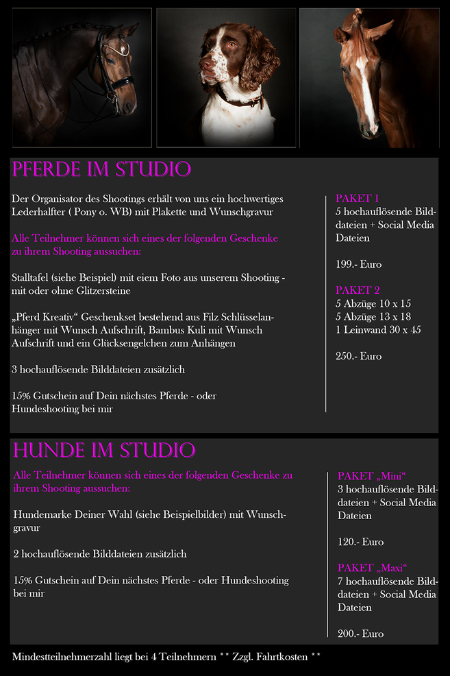 Beginnen werde ich in Kürze mit einem Studio Shootingangebot für Sammelshootings - auf Wunsch mit Weihnachtsdeko.